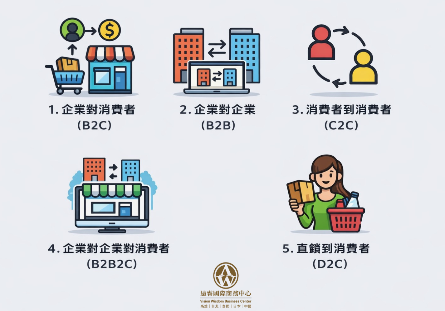 在電商平台的運作中,常見的4大商業模式如下,每一種模式在電商經營、電商引流技巧與線上賺錢方式上都有不同策略。
